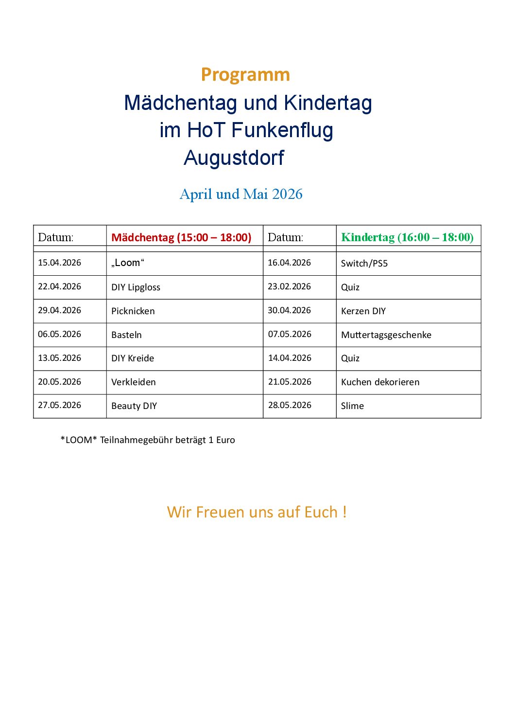 Mädchentag & Kindertag im April & Mai