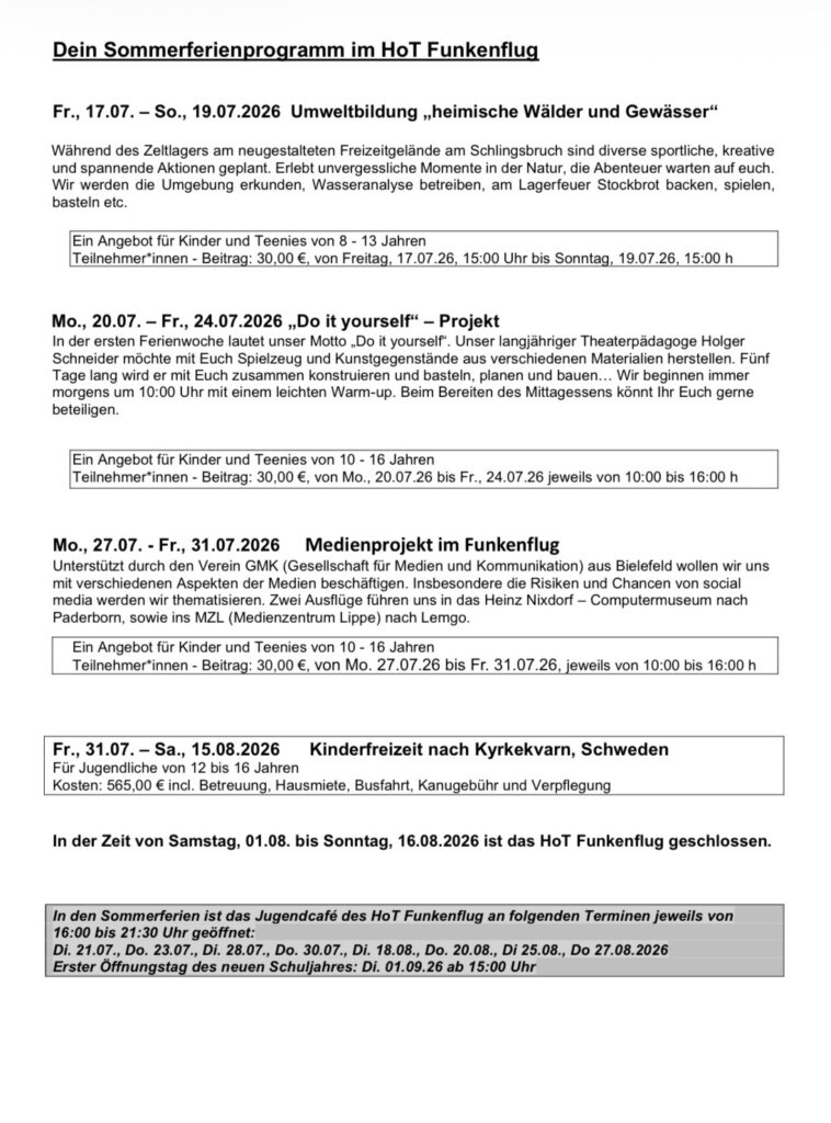 Sommerferien-Programm 2026